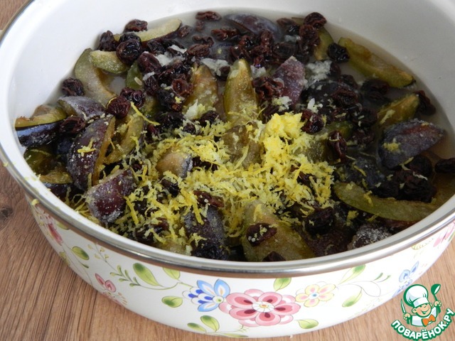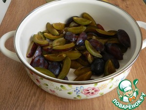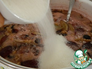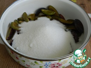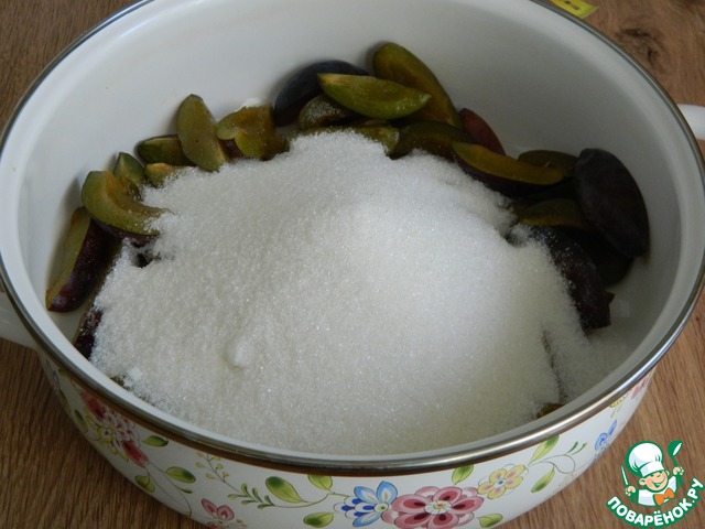 К сливам добавим пол нормы сахара и оставим на ночь, чтобы они пустили сок.