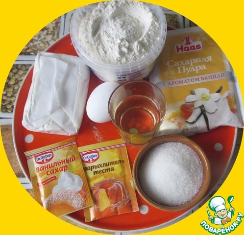 Ингредиенты для «Творожные плетенки с яблоками и джемом»: