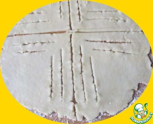 Разрезаем на 4 части, в каждой части делаем надрезы