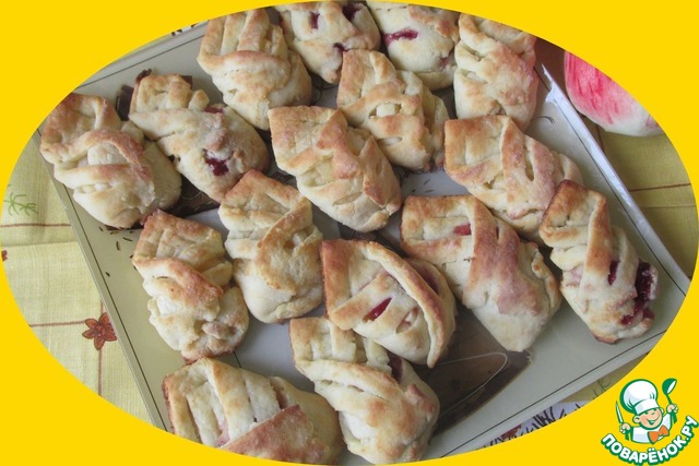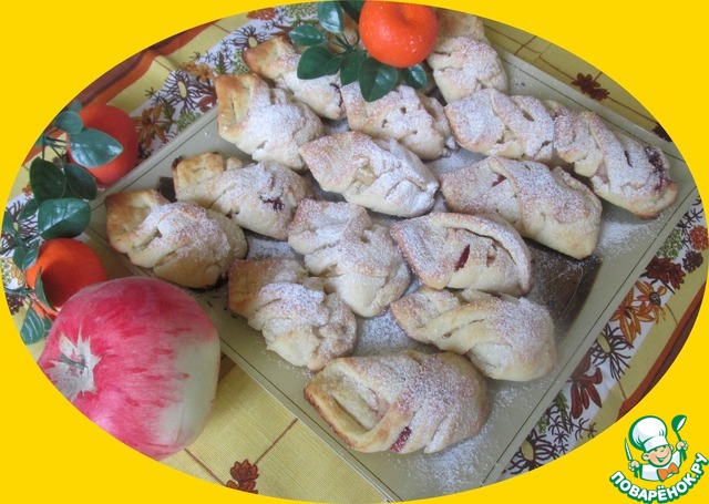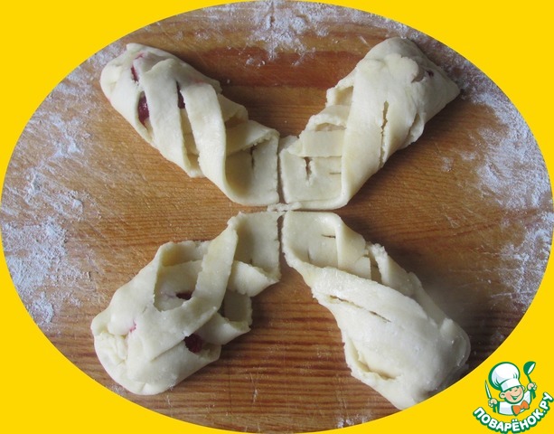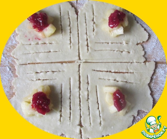 Рецепт «Творожные плетенки с яблоками и джемом»:
