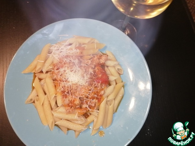 Рецепт «Ригатони с колбасками и томатным соусом»:
