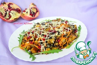 Красивейший салат, оставляющий прекрасное послевкусие. В меру пикантный, чуть деликатесный, ароматный..., добавит праздника на Вашей кухне. Повторила от В. Емельяненко, добавила любимый красный лук и заменила миндаль на свои семечки.