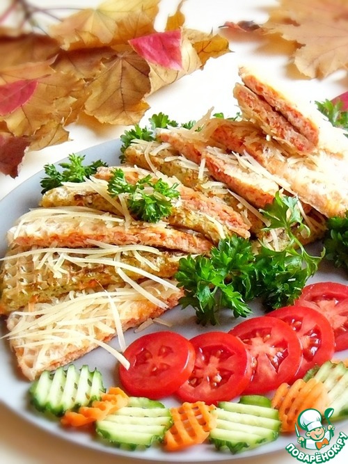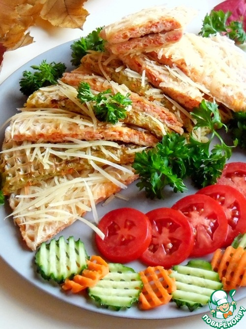 Когда снимете со сковороды готовую заготовку, слегка посыпьте тёртым пармезаном.