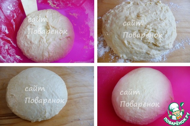 Подошедшее тесто выложить на рабочую поверхность, слегка обмять, разделить на 19 равных частей.