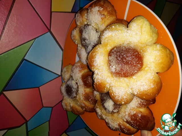 Рецепт «Булочки "Цветочки" с творогом и конфитюром»:
