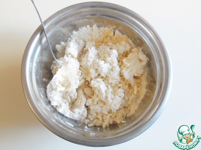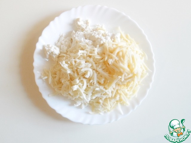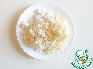 Брынзу и твердый сыр, натертые на крупной терке. -