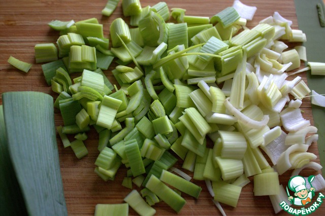 Нарезать свежий лосось мелкими кусочками. У меня замороженные обрезки филе.