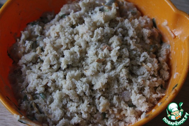 • Хлеб замочить в молоке и тоже добавить к фаршу. Все хорошо перемешать.