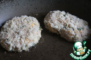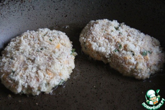 • Сформировать котлеты, обвалять в панировочных сухарях или муке (мне больше нравится в крошках черствого хлеба, которые подсушить на сковороде без масла) и жарить до золотистого цвета.