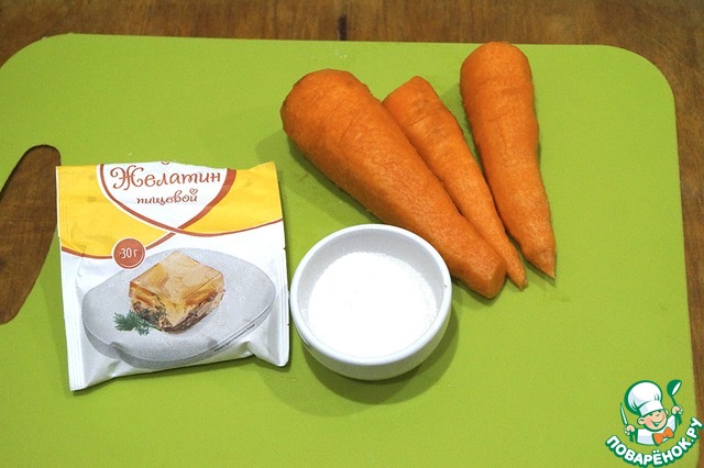 Подготовить все необходимые ингредиенты. Желатин замочить на 40 мин в 1/2ст. холодной кипяченой воды. Набухший желатин распустить на водяной бане.