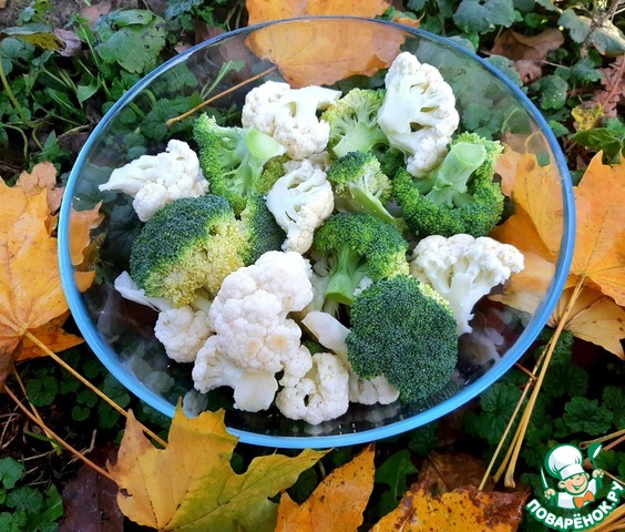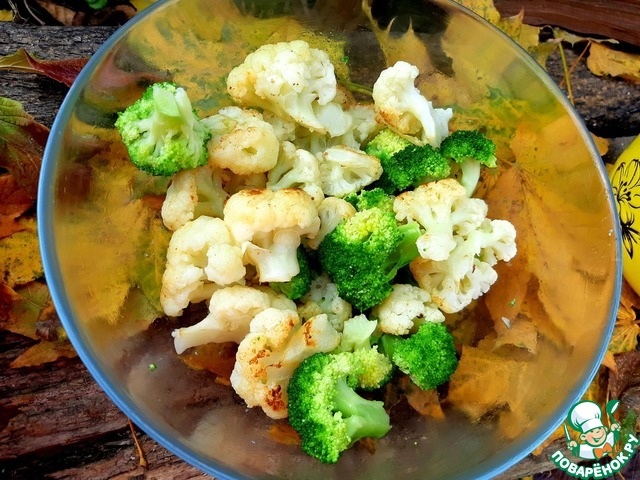 Опустить в кипящую воду на 4-5минут. После чего цветную капусту обжарить.