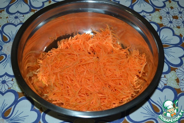 Морковь помыть, очистить и натереть на средней тёрке.