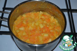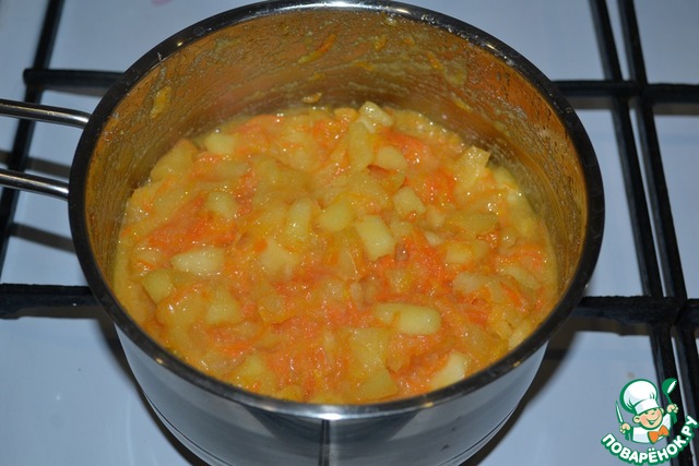 Перемешать морковь с яблоками и варить 10 минут на небольшом огне, периодически помешивая.