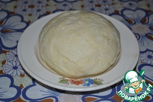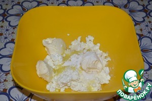 Всыпать муку и замесить мягкое эластичное тесто. Так как консистенция и творога, и сметаны может отличаться (погуще или пожиже), то регулируйте добавление муки (чуть больше или чуть меньше). Скажем так - действуйте по обстоятельствам. Но, тесто не должно быть очень крутым и липнуть к рукам, если только чуть-чуть. Положите тесто в пакет и уберите в холодильник минут на 15-20. Как раз за всё это время крем должен слегка остыть.