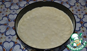 Далее: форму для выпекания хорошо смазать растительным маслом, выложить шар теста, размять по размеру формы руками и сделать не высокие бортики, размером, примерно 1,5 см.