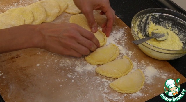 Начинки идет приблизительно по 1 столовой ложки на каждый вареник.