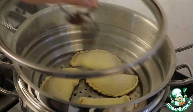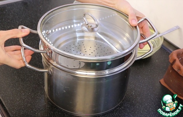 Варить вареники я буду в кастрюле на паровой бане. Заполняю 1/4 водой и ставлю на большой огонь. Важно, чтобы вода кипела!
