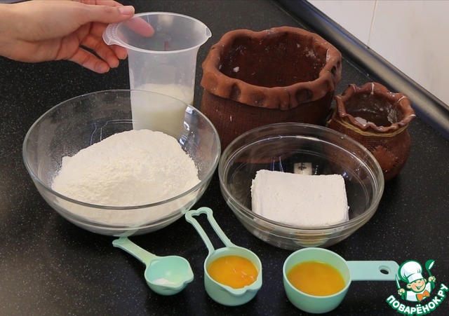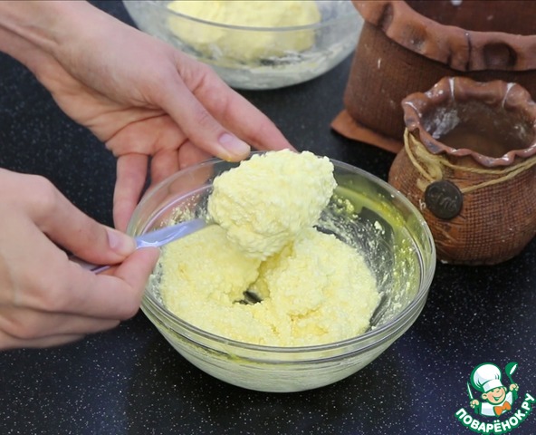 С начинкой все еще проще. К творогу добавляю желток, сахар, ванильный сахар. Если творог будет течь и плохо держать форму, можно добавить 1 столовую ложку без горки манки. И оставить набухнуть минут на 10.