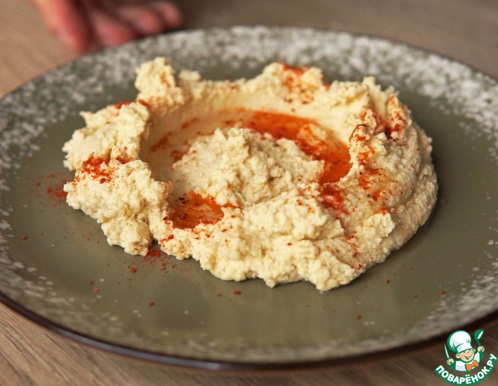 Сейчас это уже полноценный хумус. По консистенции очень похоже на подтаявшее мороженное. Структура однородная, лёгкая и кремовая. Польём растительным маслом, добавим паприку и вот она вкуснейшая закуска.