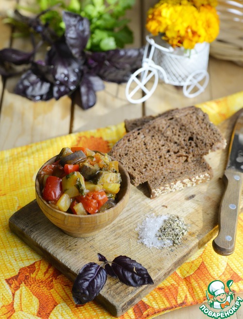 Рататуй - популярное овощное блюдо Прованской кухни. Классический рататуй готовится немного заморочно и у плиты надо провести полдня. Предлагаю упрощённый, но не менее вкусный вариант этого яркого, ароматного и полезного блюда. Кроме того, блюдо универсально. Его можно подавать, как горячую закуску или основное блюдо или, как холодную закуску. А ещё - это 136000-ый рецепт на сайте. Вот, так я подгадала!!! Поздравим наш любимый сайт с такой внушительной цифрой!