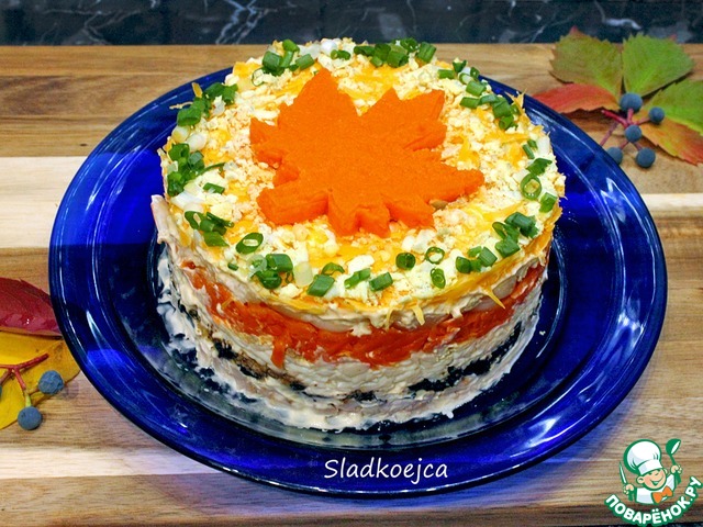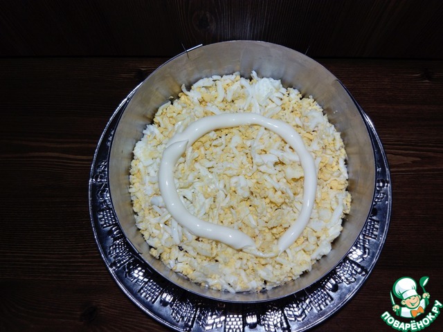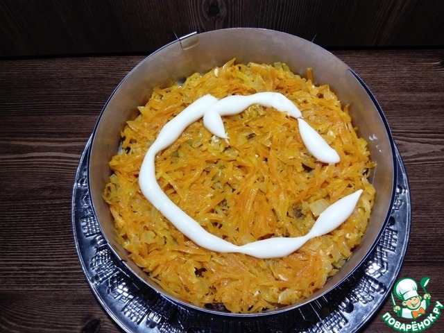 5 слой - обжаренная морковь и репчатый лук + майонез