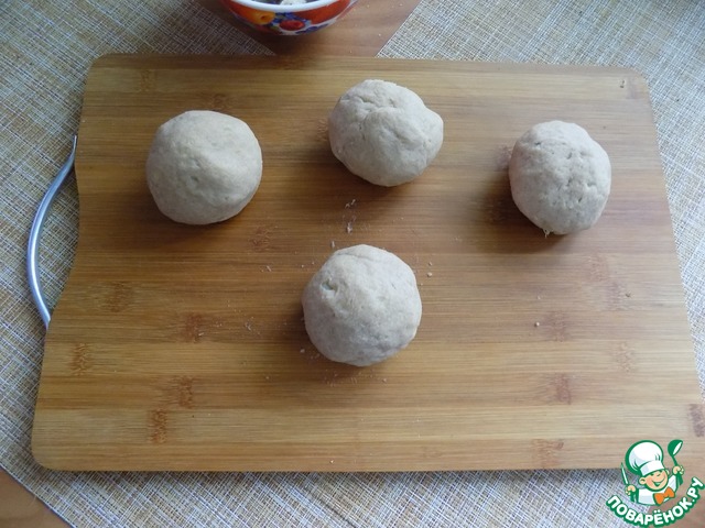 Делим тесто на кусочки и скатываем из каждого шарик примерно в диаметре 7 см. Это я буду делать лепёшки такой величины. Вы можете делать большие или меньшие.