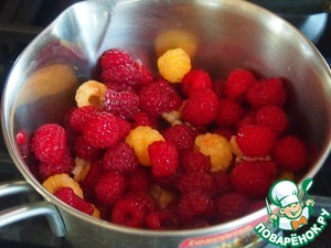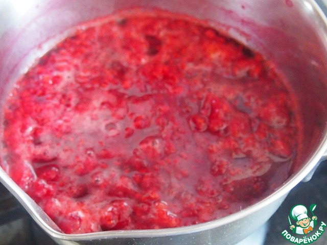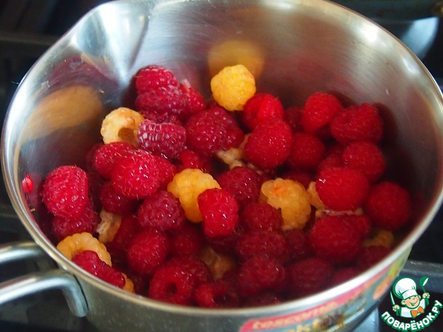 Малину помыть, сложить в ковшик, добавить две ложки воды и поварить пару минут. -