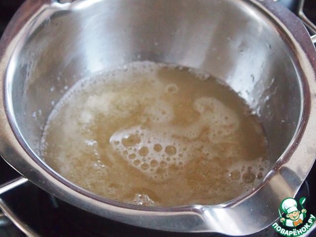 Желатин залить оставшейся холодной водой, чтобы набух. Нагреть на водяной бане до растворения. Остудить.