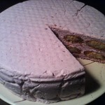 Поставить форму в холодильник до застываня. Застывший торт перевернуть на разделочную доску, снять форму. Потом сверху на печенье положить блюдо и перевернуть на него торт вместе с доской, убрать доску, осторожно снять с торта пленку.