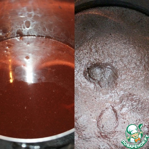 Все сухие ингредиенты теста перемешать. Яйцо, масло и молоко взбить, перемешать с половиной сухой смеси. Влить горячий кофе, взбить, перемешать с оставшейся половиной сухой смеси. Вылить готовое тесто в форму диаметром 16см и выпекать при температуре 170 градусов до готовности. Готовый корж остудить.