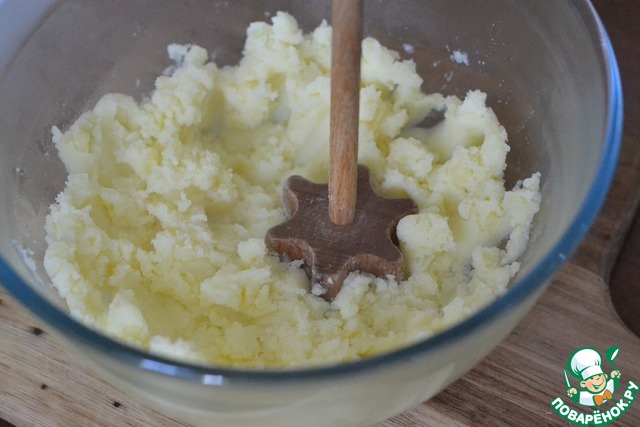 Добавить в картофель теплое молоко и приготовить пюре. -