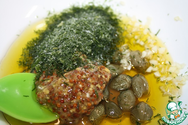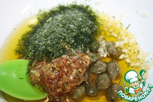 Каперсы тоже по вкусу, если нет их, то и необязательно. -