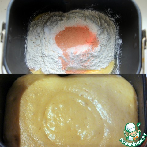 Все ингредиенты теста положить в хлебопечку и оставить для замеса и подъема на 1.5- 2 часа.