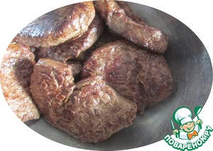 Каждый отбитый кусок разрезаем на две части, ибо обязательное условие подачи карбонадов - четное число кусков на тарелке.