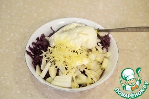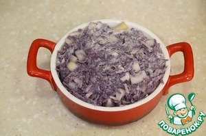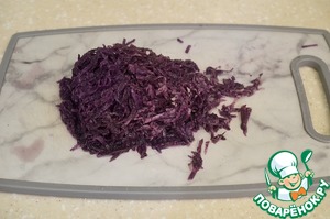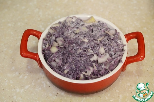 Картофель почистите и натрите на терке. Я использую картофель фиолетового цвета.