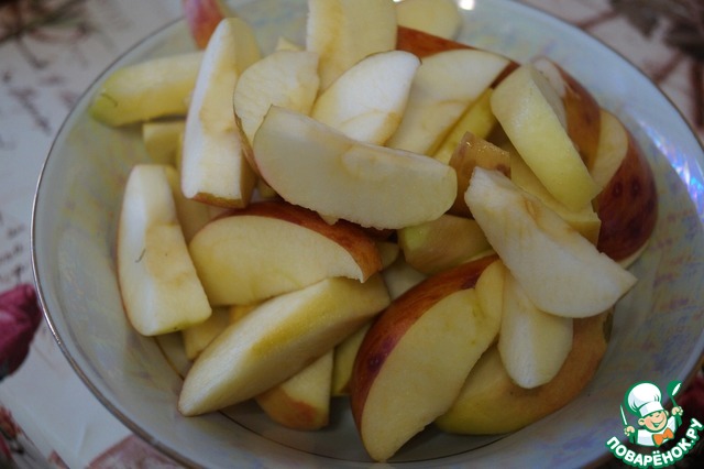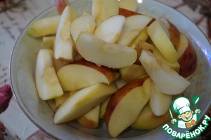 Яблоки помоем, вырежем сердцевину и нарежем дольками.