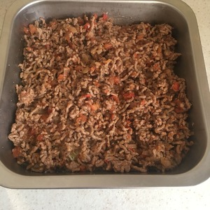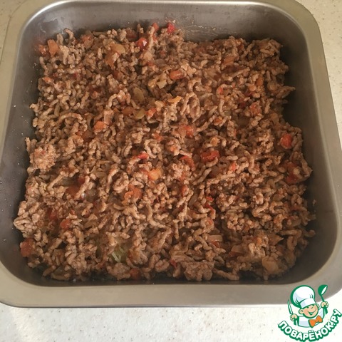 • Выкладываем мясную начинку сверху на слой картофеля.