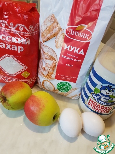 Смешаем яйца, молоко, сахар. Я делаю это миксером. Добавляем муку и соду, перемешиваем. В конце добавляем яблоки. Выпекаем на раскаленной сковороде, смазанной растительным маслом.