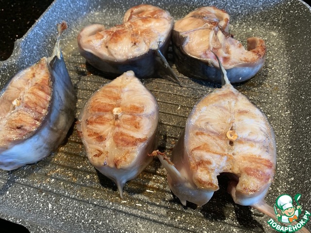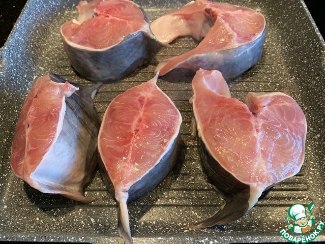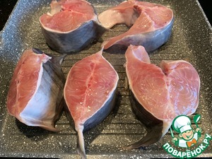 Смажьте рыбу маслом и жарьте на сковороде-гриль, по 5-7 минут с каждой стороны, до золотистой корочки.