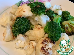 Добавьте цветную капусту, посолите и жарьте до готовности 3-4 минуты. Выложите.