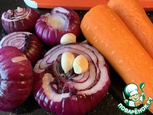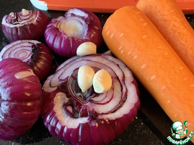 Стейки посолите, поперчите, приправьте итальянскими травами и одним зубчиком чеснока (остальной чеснок понадобится для овощей). Поставьте в предварительно нагретую до 200 градусов духовку на 20 минут.