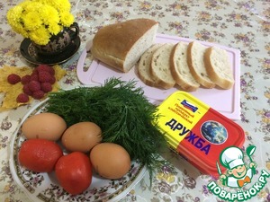 Приготовим продукты. Хлеб лучше всего взять вчерашний, его легче нарезать на тоненькие ломтики.
