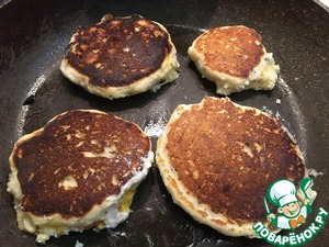 Берём немного теста, сверху кладём пюре, формируем сырники