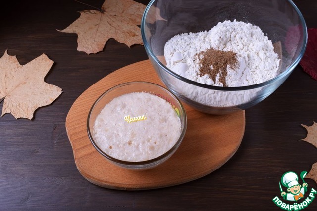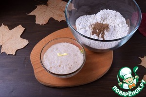 Пряности смешаем и половину смеси добавим в муку. Вторую половину пряной смеси оставим для обсыпки. К муке также добавим соль и пока отставим в сторону.