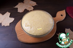 Вот так поднялось тесто спустя 40 минут. Обминаем его, посуду накрываем и оставляем для повторного подъема.