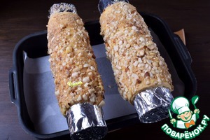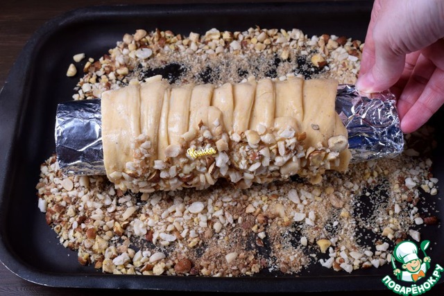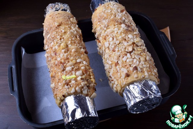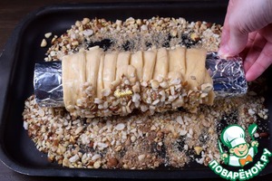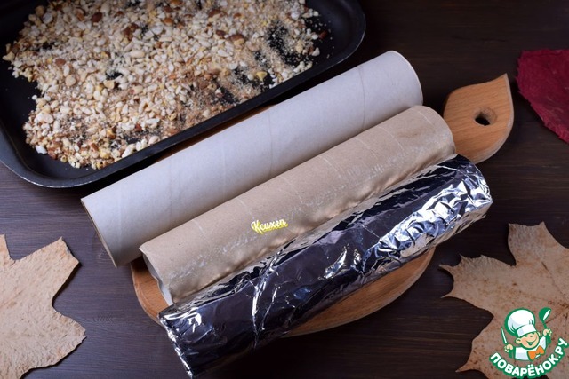 Для обсыпки традиционно используют грецкие орехи. Я взяла фундук и в процессе приготовления добавила немного арахиса.