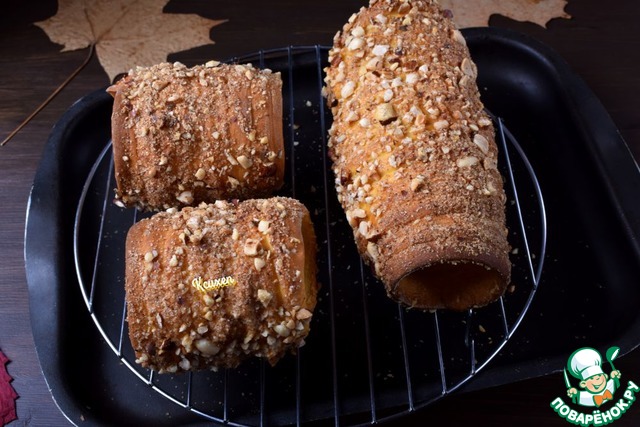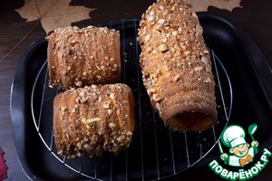 И еще одна решаемая проблема: трдельники выпекаются на весу, так они получаются в форме трубы. В домашних условиях поможет форма для выпечки, которая по размеру будет немного уже, чем втулки.