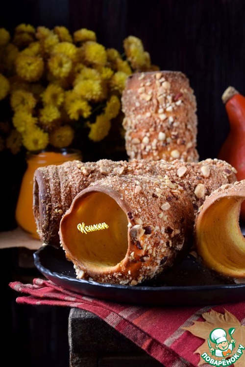 Чешский трдельник - знаменитая уличная выпечка, которую можно попробовать не только в Чехии. Например, в Венгрии эта выпечка называется кюртёшкалач. Трдельник выпекается над углями, считается праздничным угощением и продается на ярмарках или рождественских базарах. Но что делать, если в Прагу никак не попасть, а выпечку попробовать хочется? Предлагаю приготовить трдельники в духовке, добавив осеннюю нотку в тесто - тыквенное пюре и специи, традиционные для тыквенного пирога.