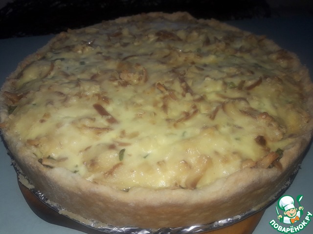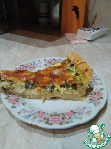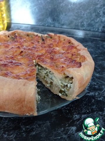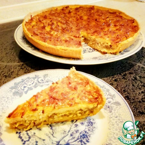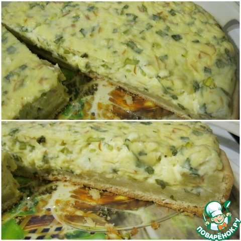 И еще на заметку: пирог при выпекании практически не поднимается (нечему там), поэтому если после заливки остаются бортики теста - положите их лопаточкой вкруговую на начинку, иначе после выпечки эти бортики останутся сухими и тонкими. Я примерно на сантиметр обрезала после выпечки.