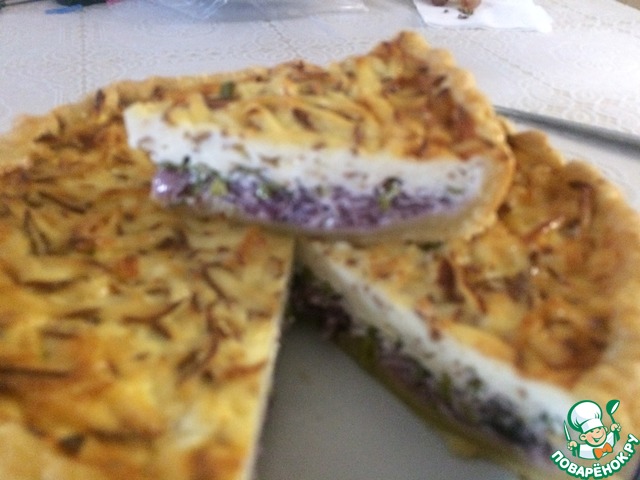 Такого теста я ещё не пробовала, но часто пеку с луком и очень люблю смешивать репчатый с пореем приблизительно 1:1.
